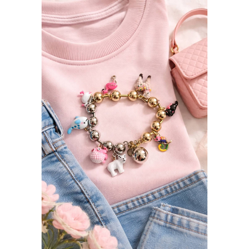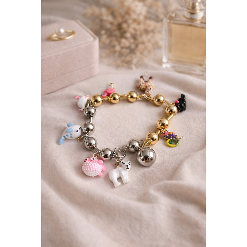 Bracelet is made by stainless steel and pendants with enamel elements.