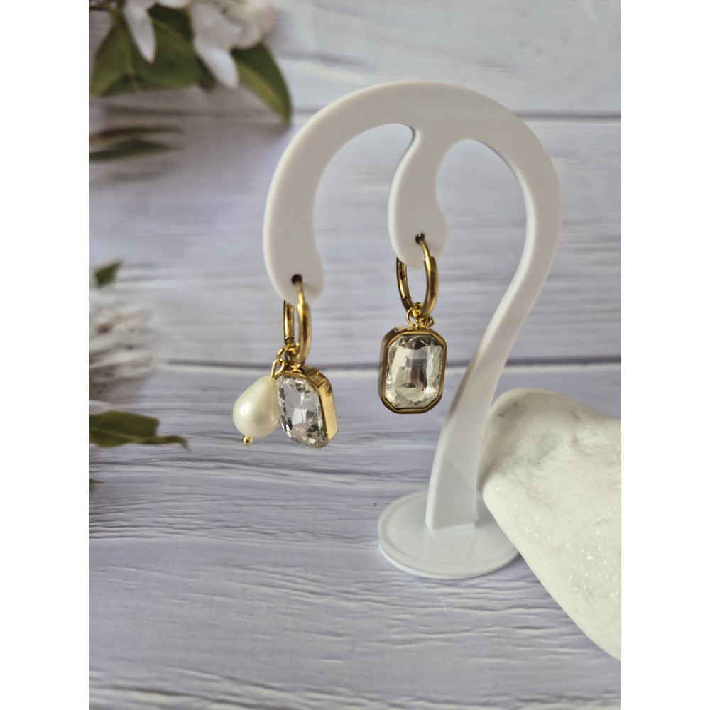 These lightweight and delicate earrings ensure all-day comfort. Ideal for sensitive skin and for anyone looking for durable and stylish accessories. Crystal, Fresh real white or black pearl.
