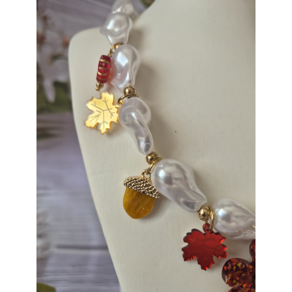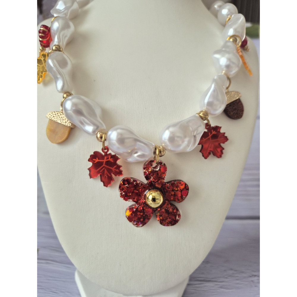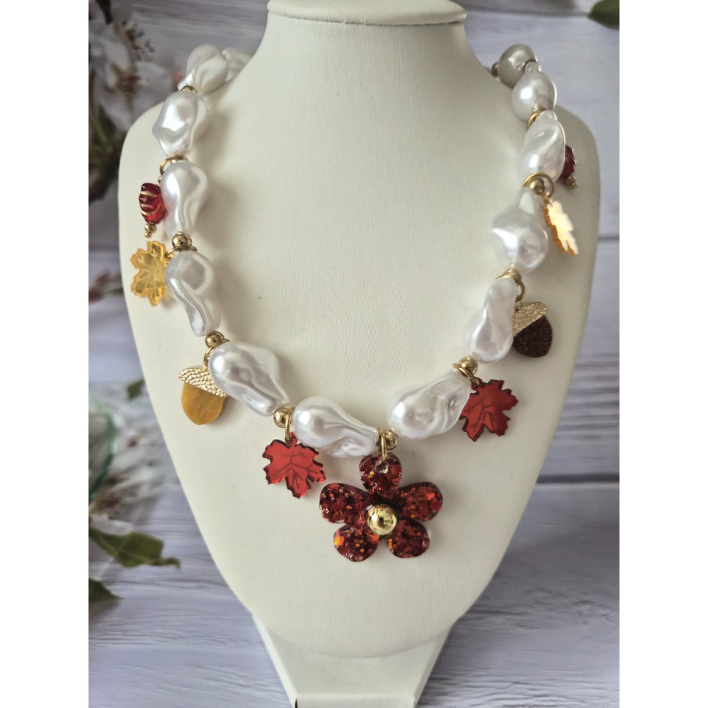 Artificial pearls, stainless steel elements, acryl leaves, ensuring lasting shine