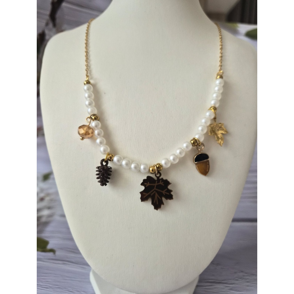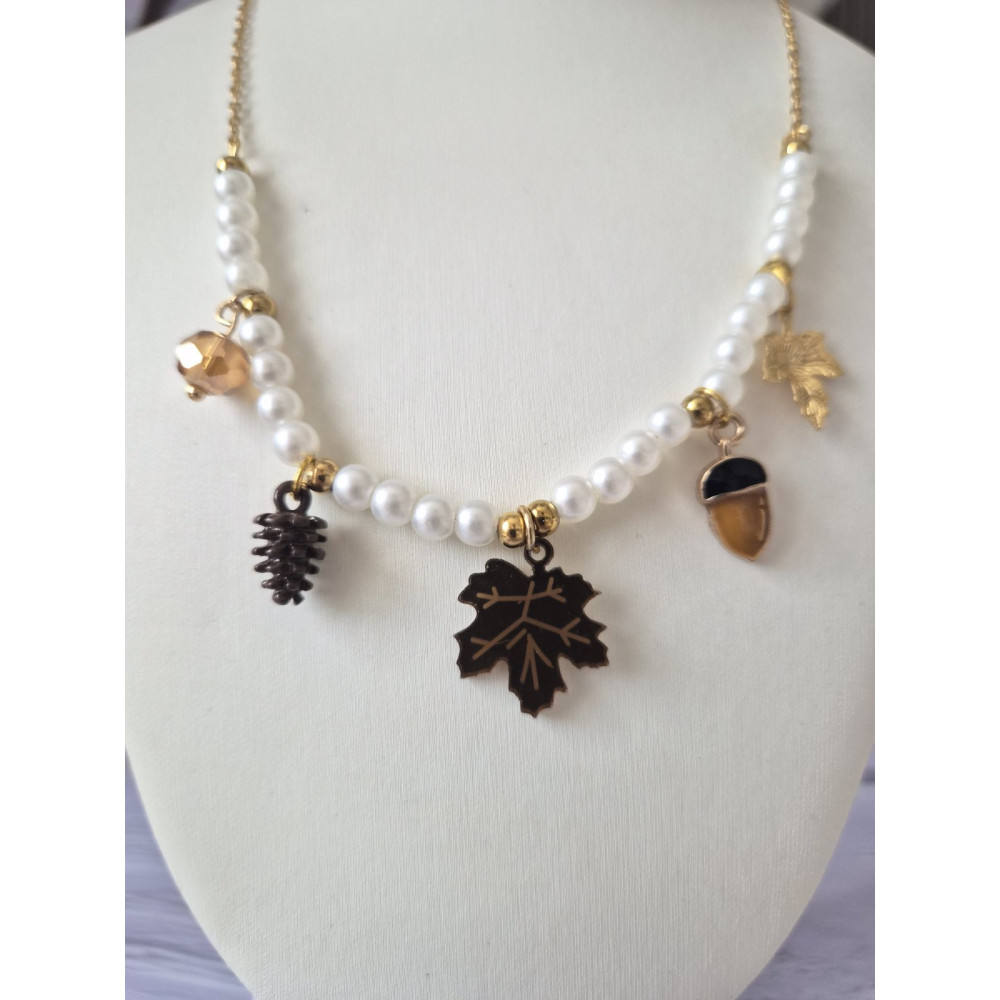 Artificial pearls, stainless steel elements, acryl leaves, ensuring lasting shine and comfort for everyday wear.