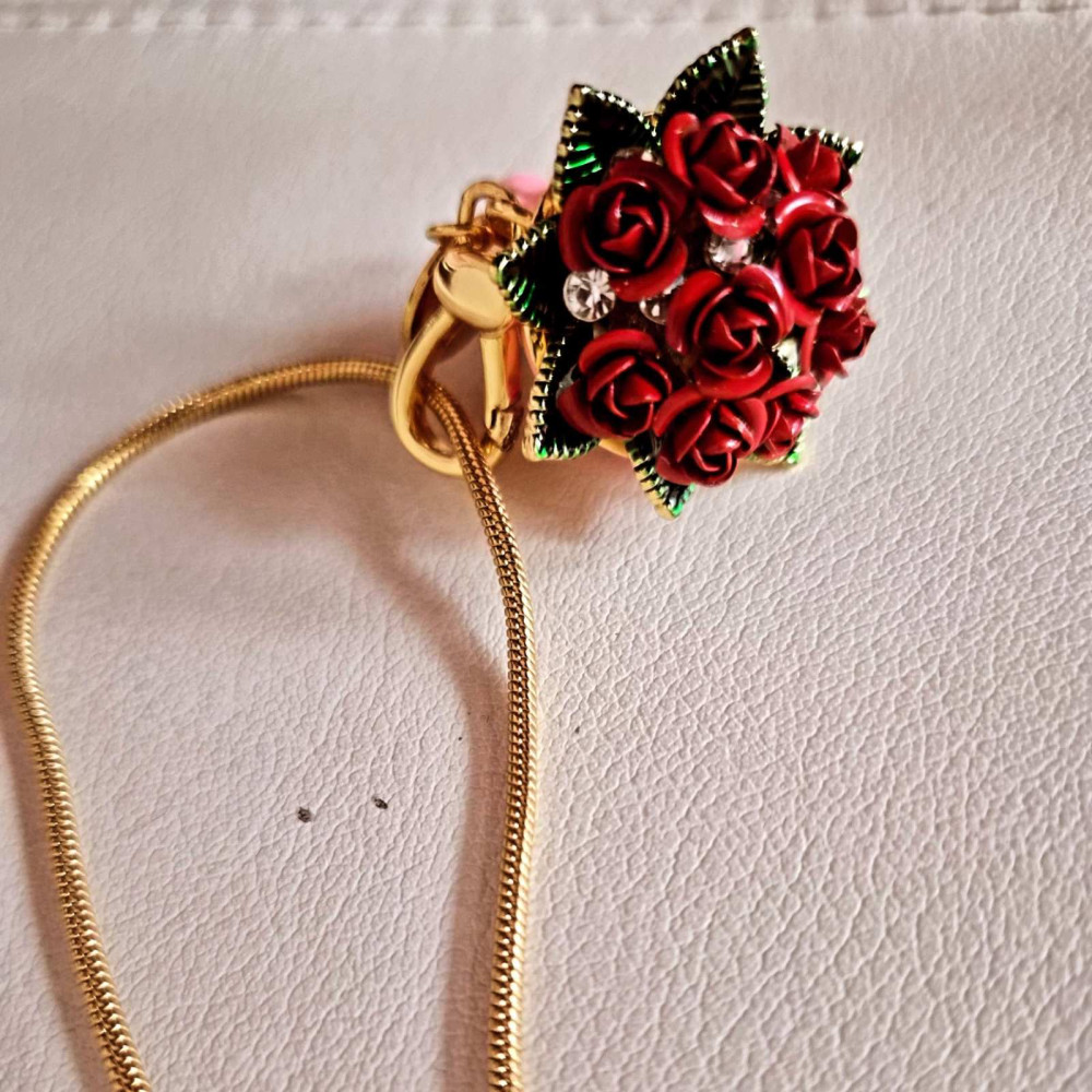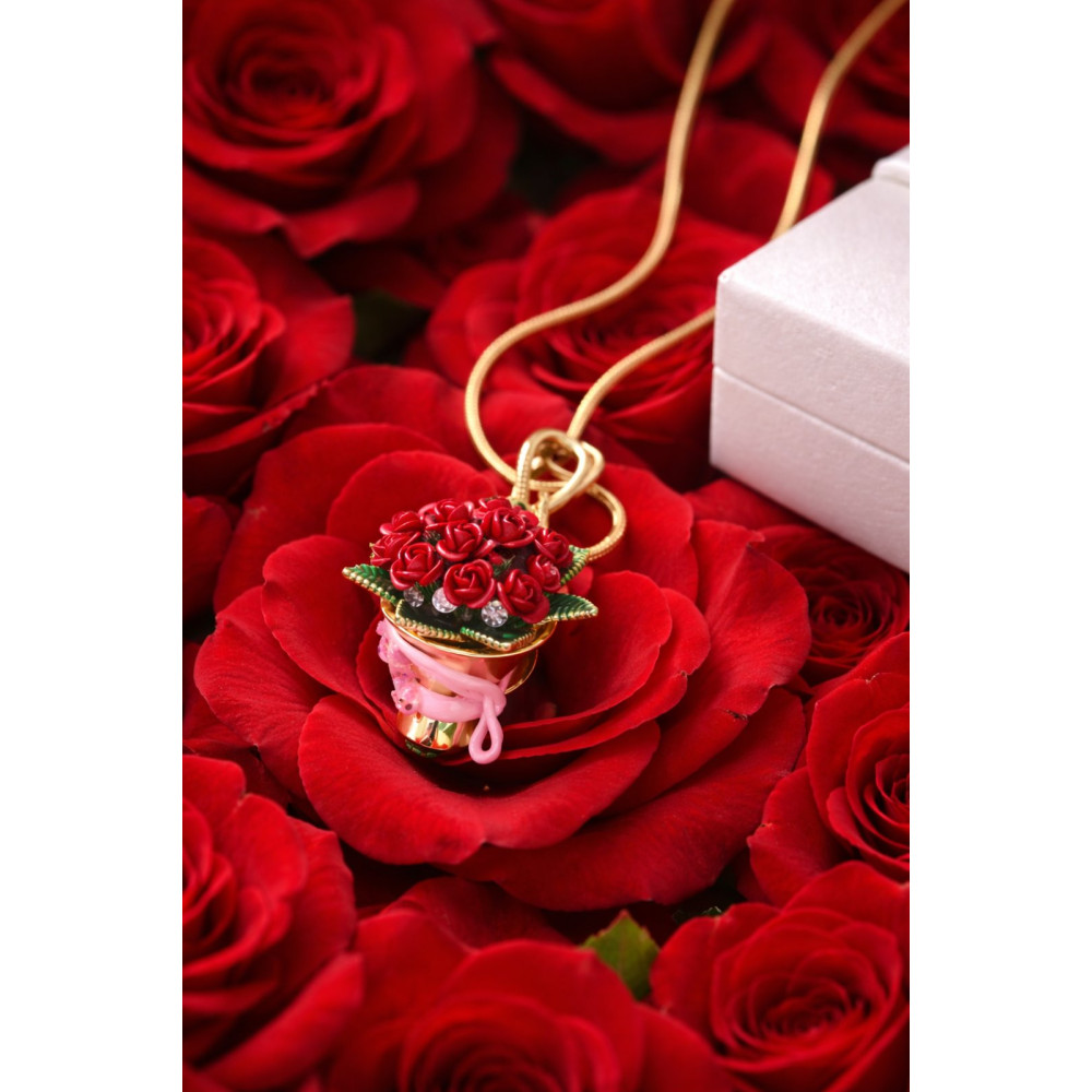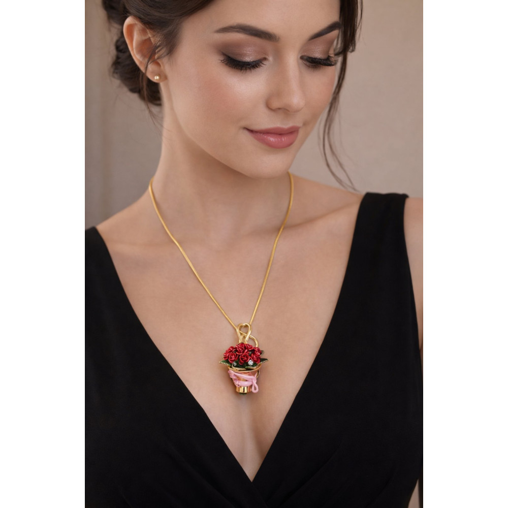 This necklace is crafted from high-quality stainless steel that does not tarnish and keeps its flawless shine over time. Enamel element bouquet roses with crystals. The bouquet is 2 sm hight / 2 sm width.