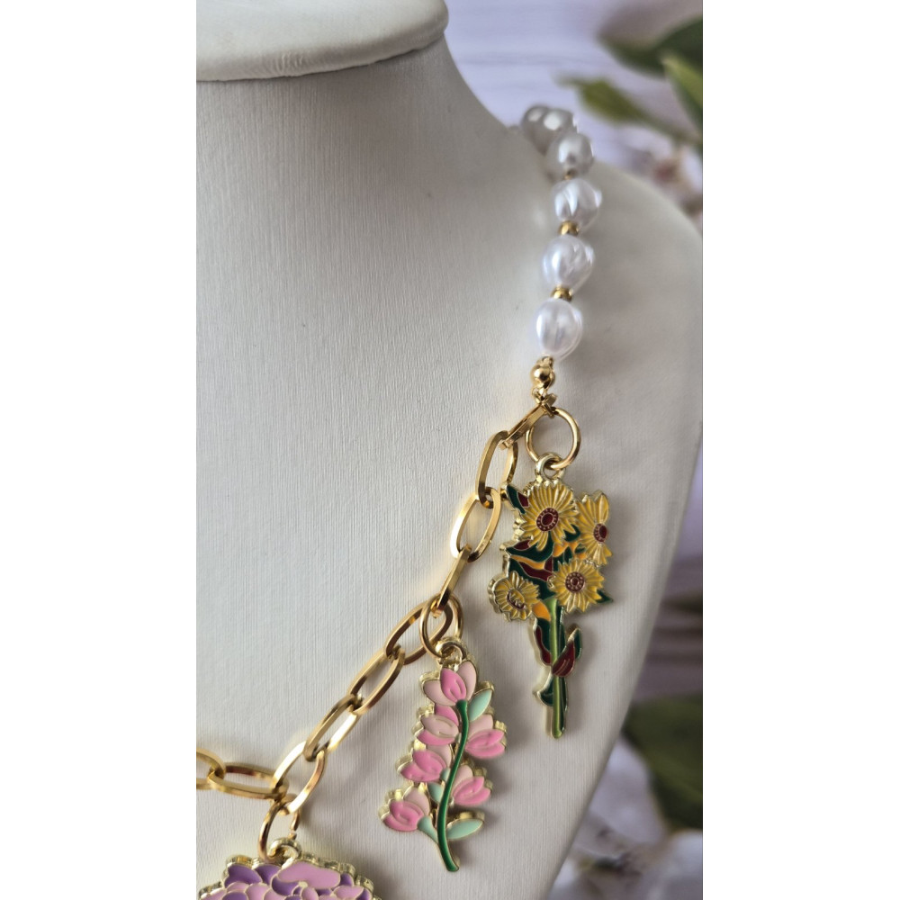 This necklace made by stainless steel elements and pearls beads.