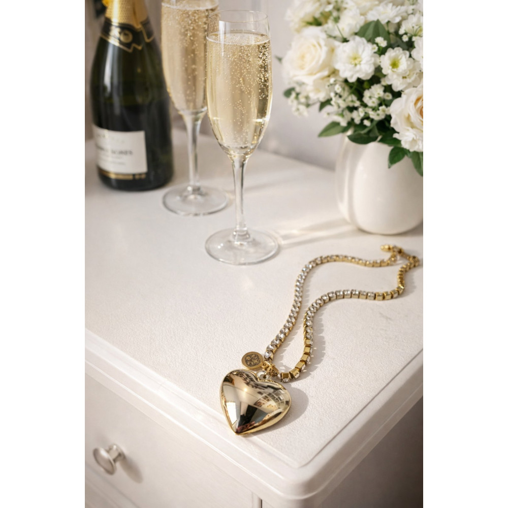 This necklace is crafted from high-quality stainless steel and zirconia that does not tarnish and keeps