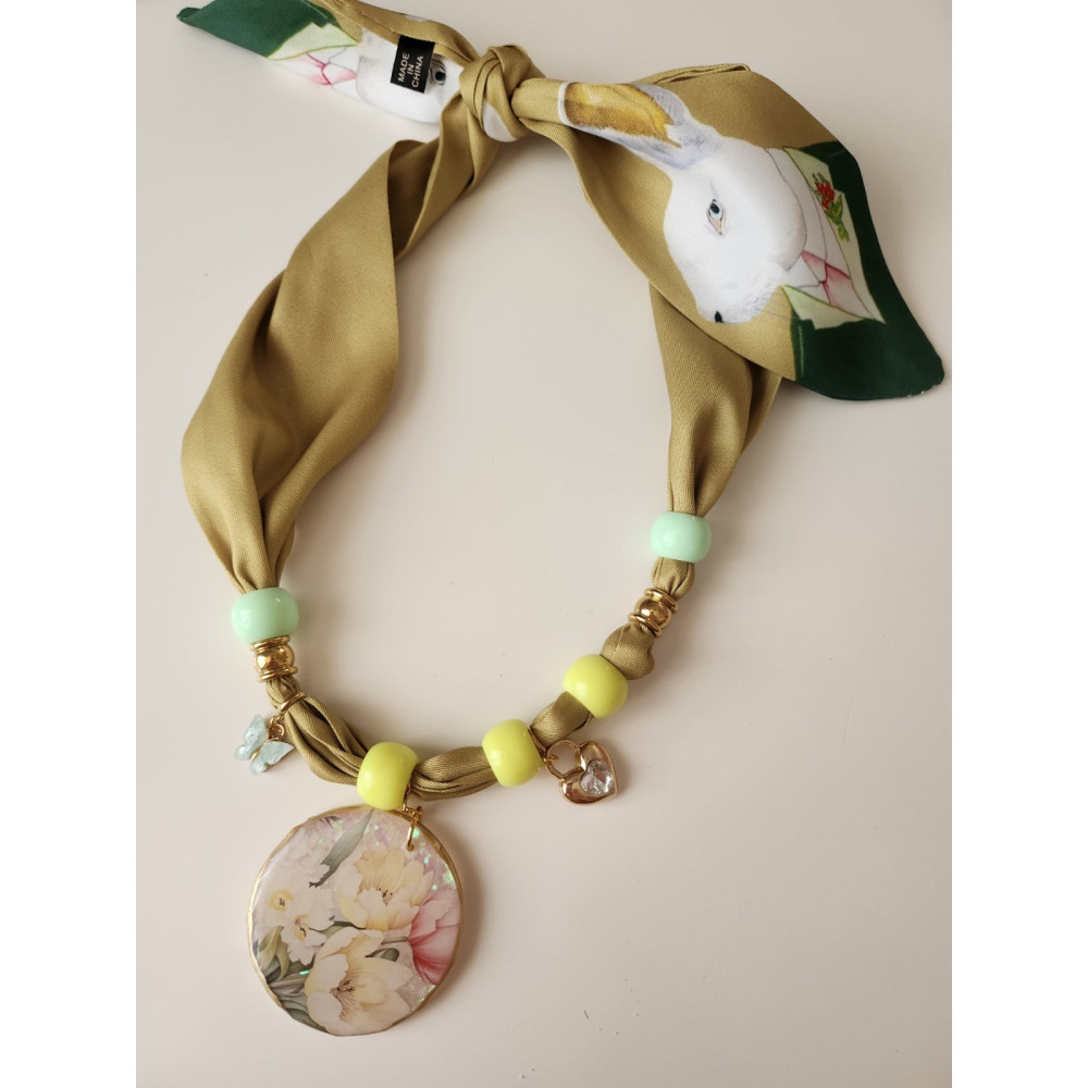 Шал-колие с висулка от смола – универсален аксесоар за шал, колие и чанта.