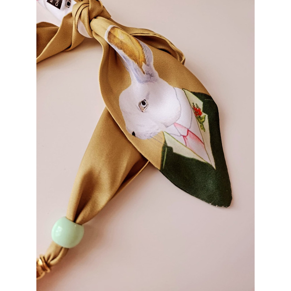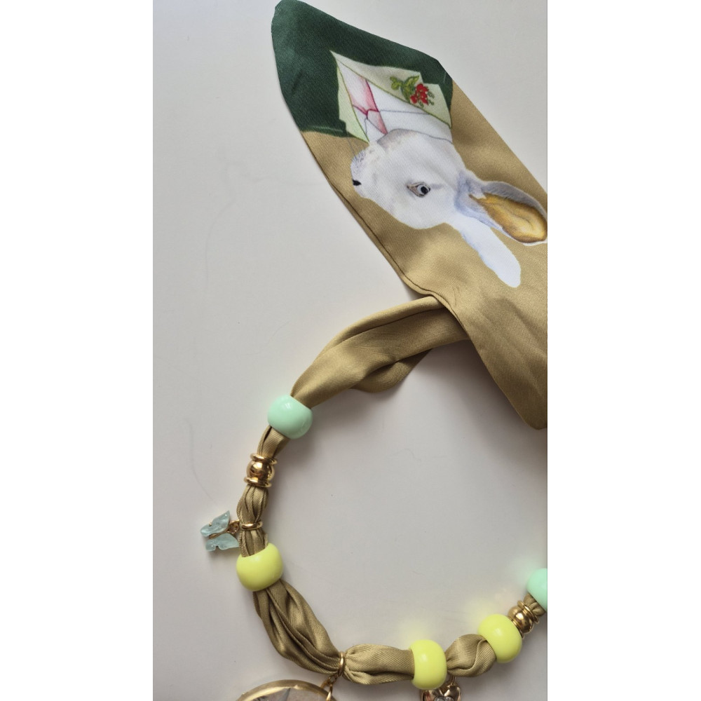 С дължина 87 см и ефектна висулка от смола със златен кант (5×5см), този аксесоар е идеален за носене като шал, колие или декорация за чанта.