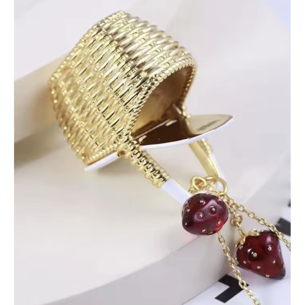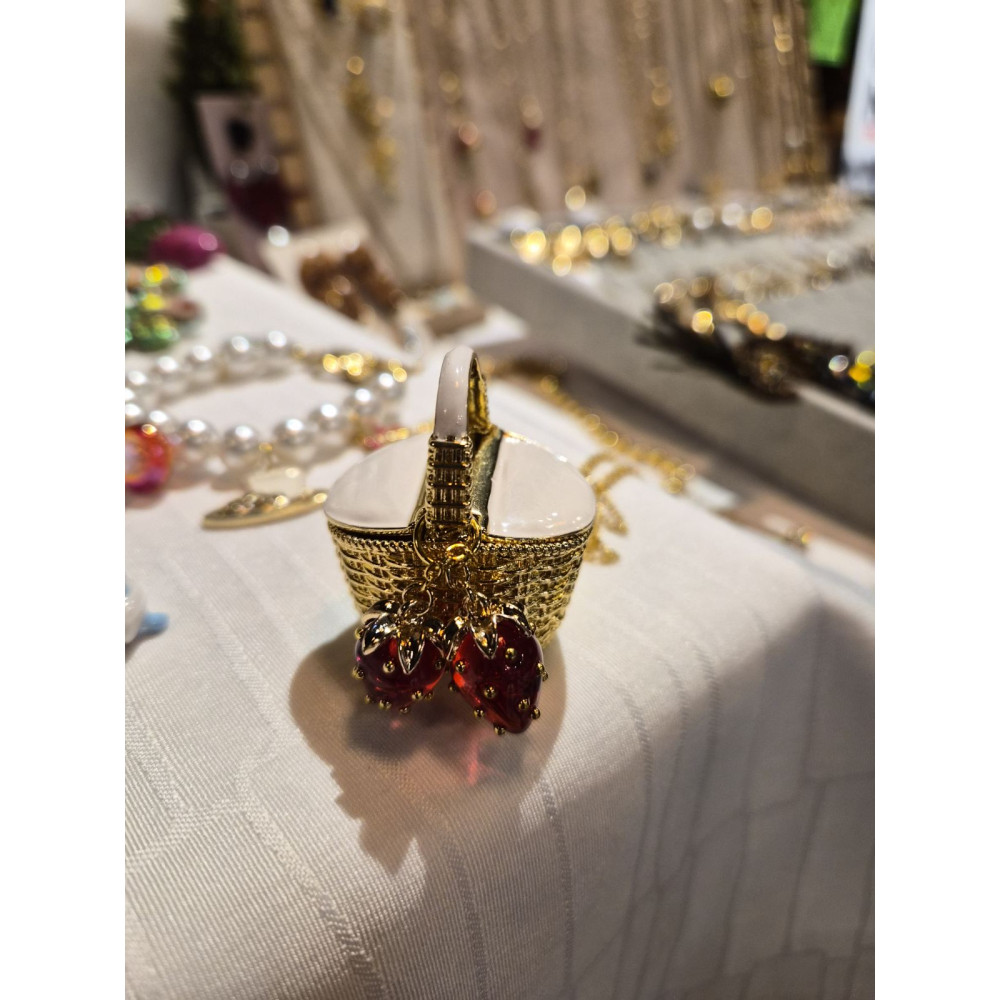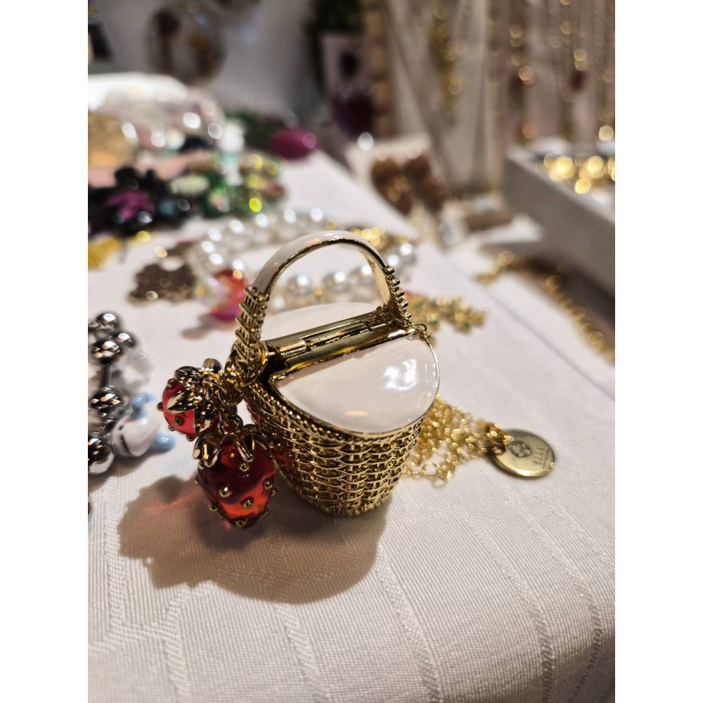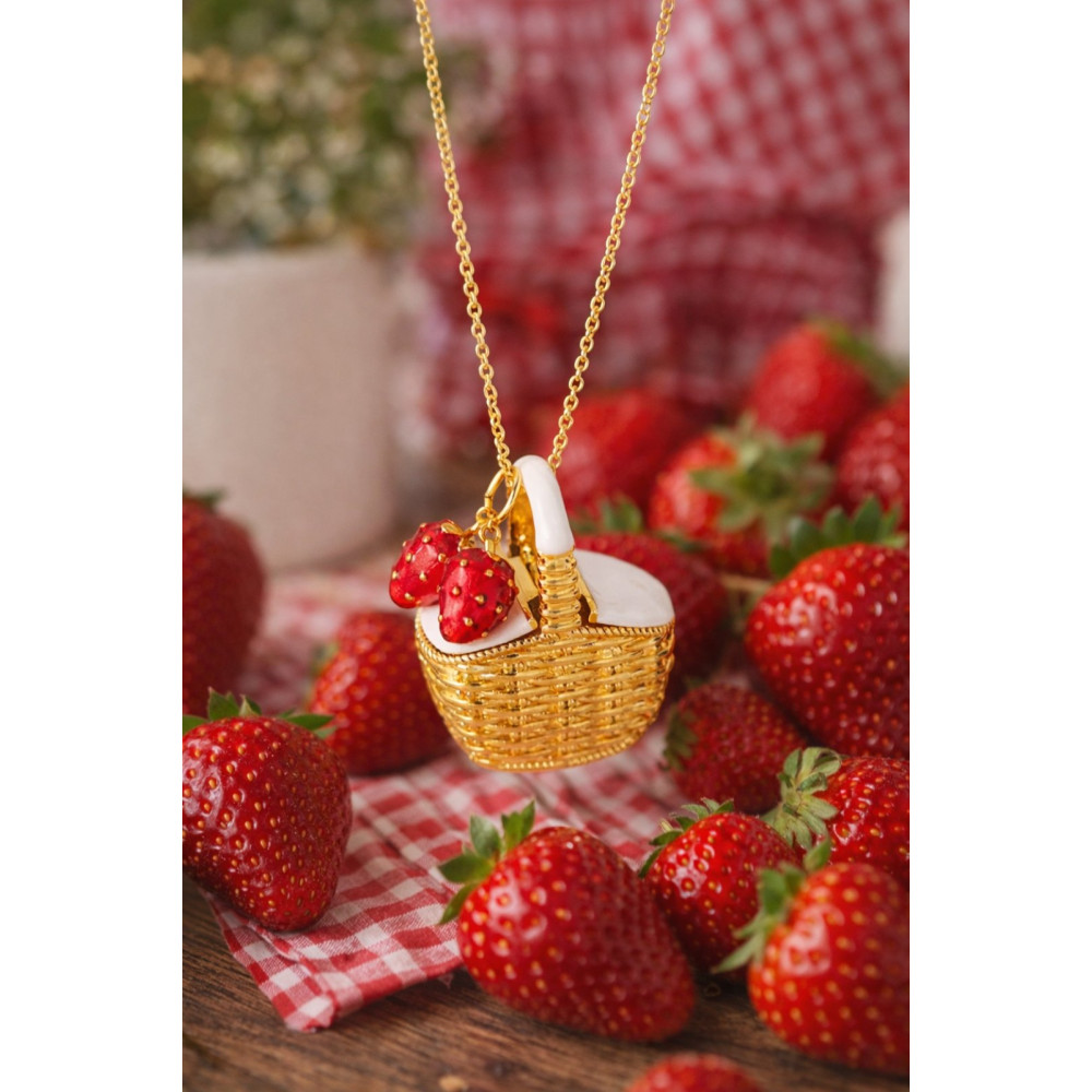 Направете впечатление с това смело, модерно колие. Със стомана/месинг верижка и впечатляваща DIY висулка емайлирана кошница с ягоди /2 броя/, то излъчва артистичност и елегантност. Стилно, модерно и изтънчено – този аксесоар е създаден да привлича погледите. Колието е дълго и пада до под гърдите.