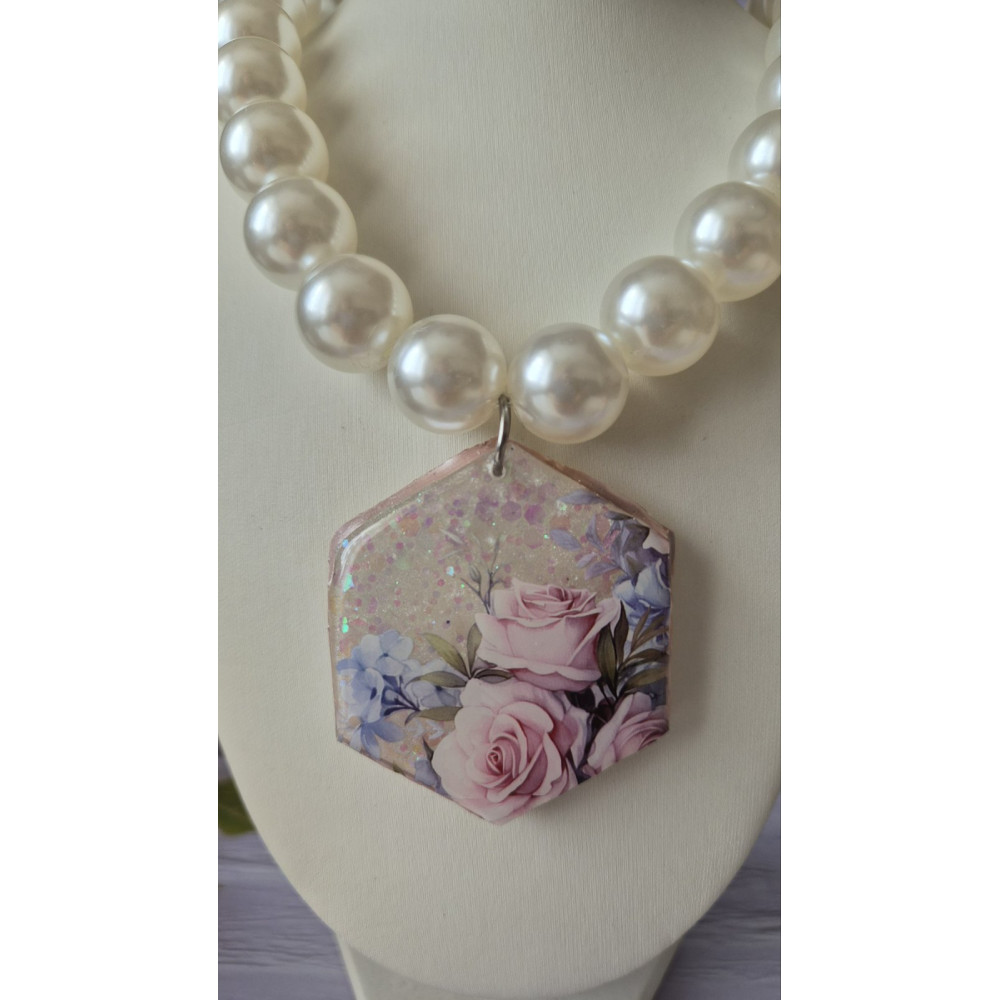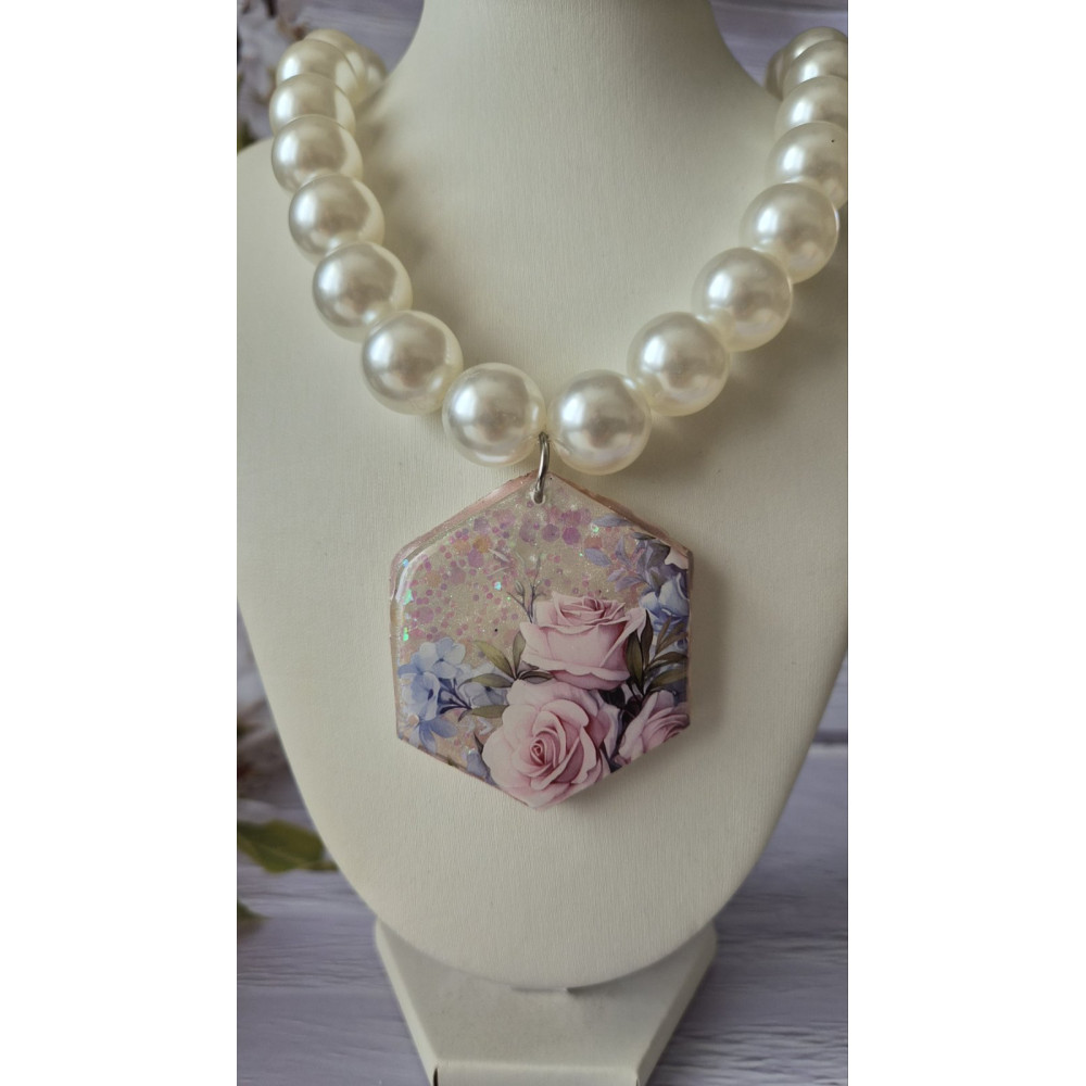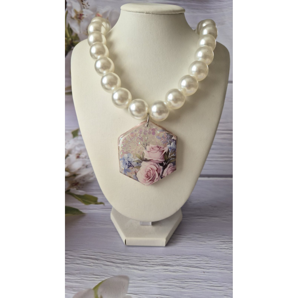 Колие от перли Майорка с ръчно изработена висулка от смола