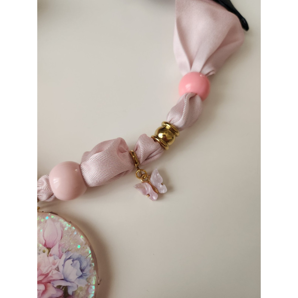 Декориран с месинг-стомана, пеперуда в розово и акрилни топчета,акрилно лале мъниста, стомана халки, шал-колиѐто съчетава модерна елегантност и универсалност.