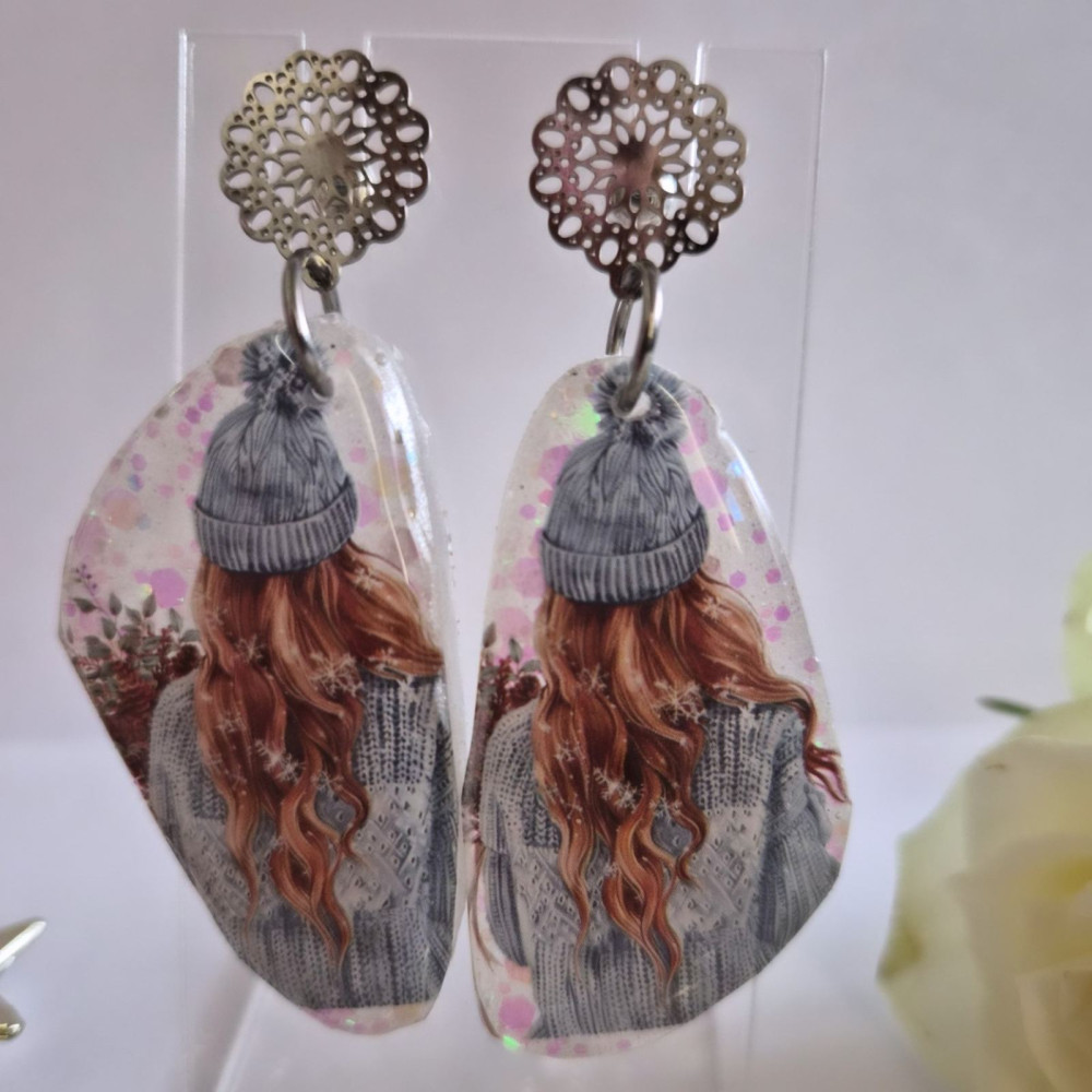 Открий изяществото в детайла с тези ръчно изработени обеци от бижутерска смола.