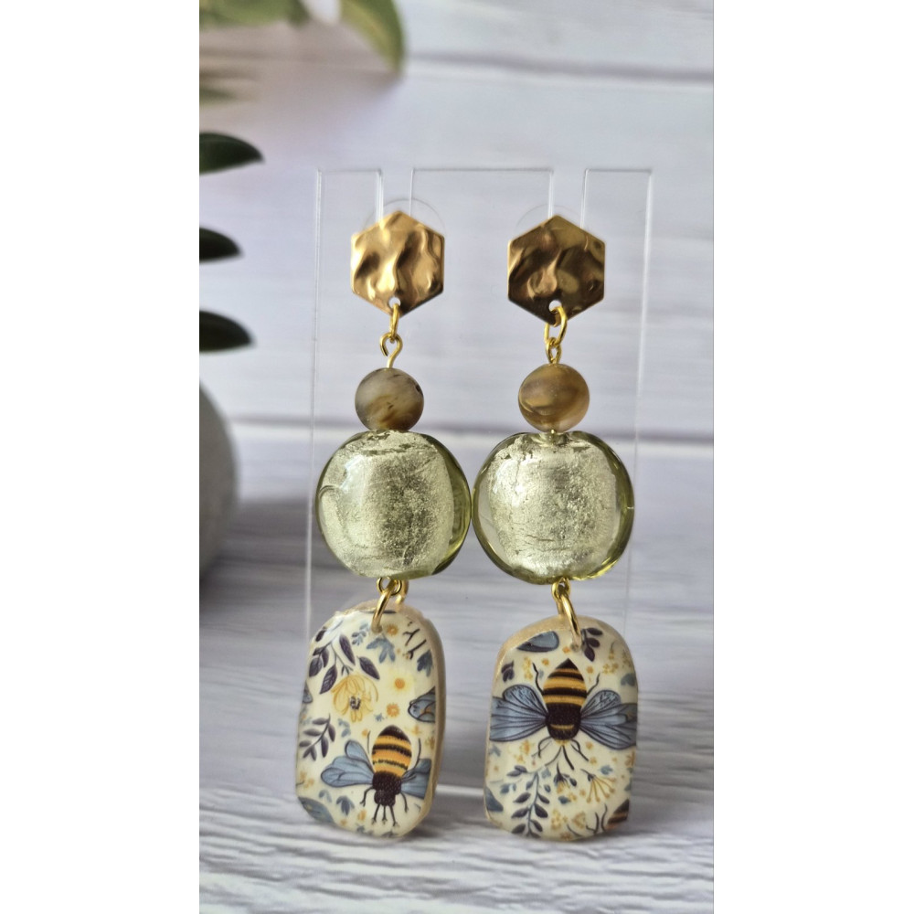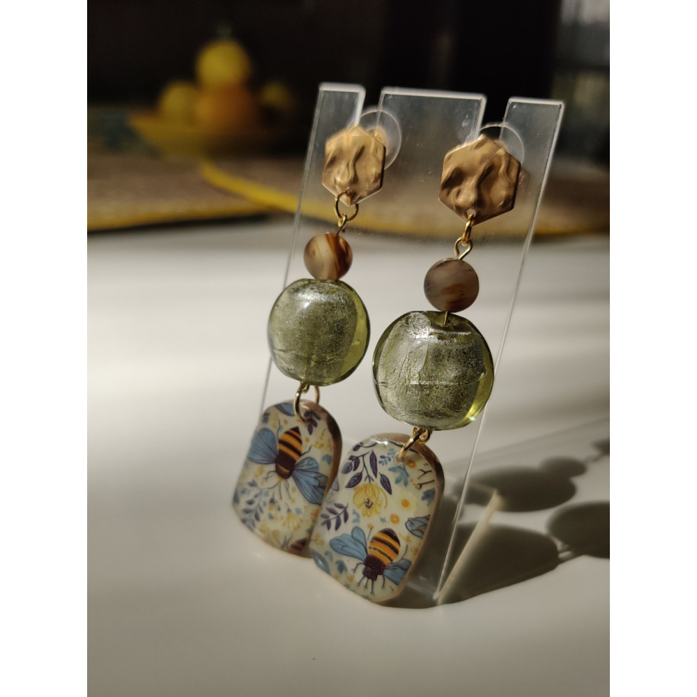 неръждаема стомана винт, която осигурява издръжливост и безупречен блясък. Красиво мъниста в зелено/златно и ахат.