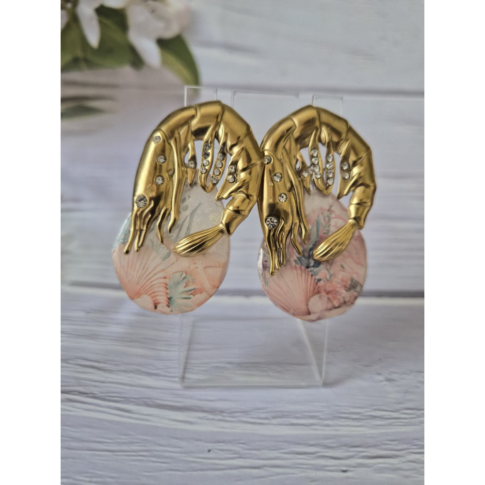 Обеците са стомана на стомана винт с кристали. Изработени са от бижутерска смола, на бял брокатен гръб.