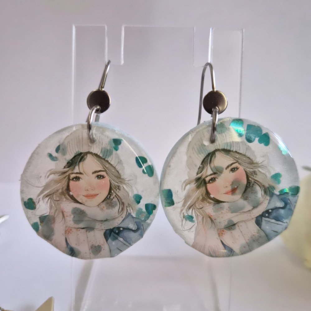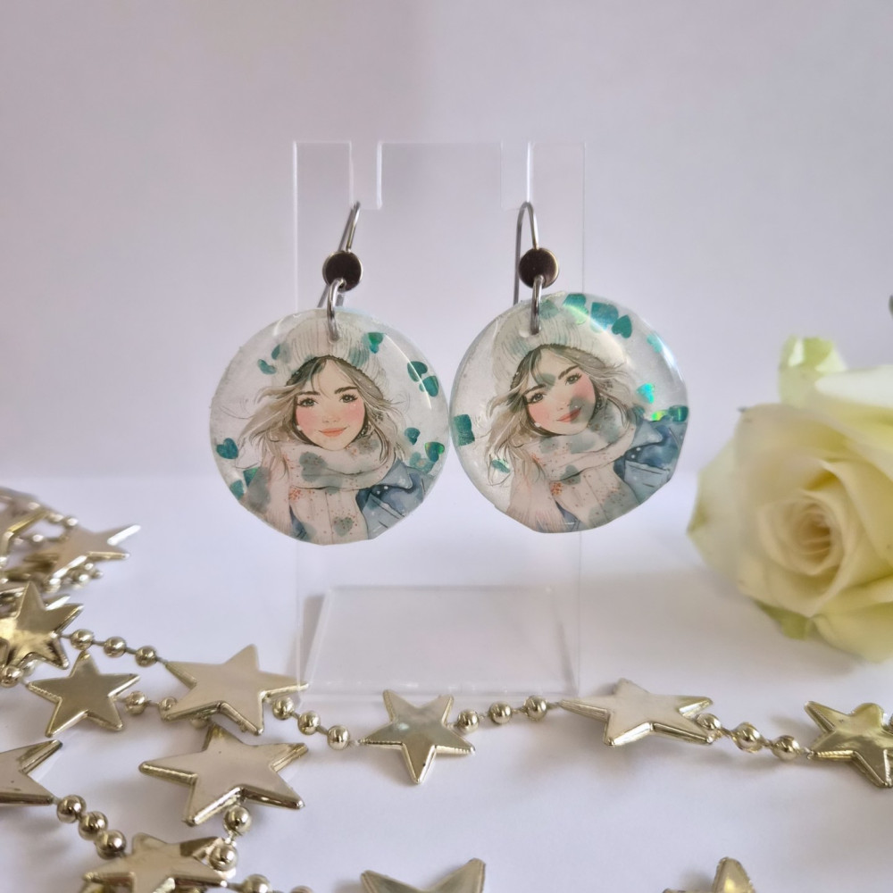 Добави артистичен и смел акцент към своя стил с тези ръчно изработени обеци от бижутерска смола, съчетаващи креативност и изисканост.