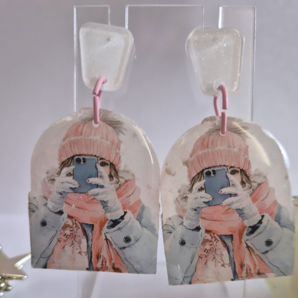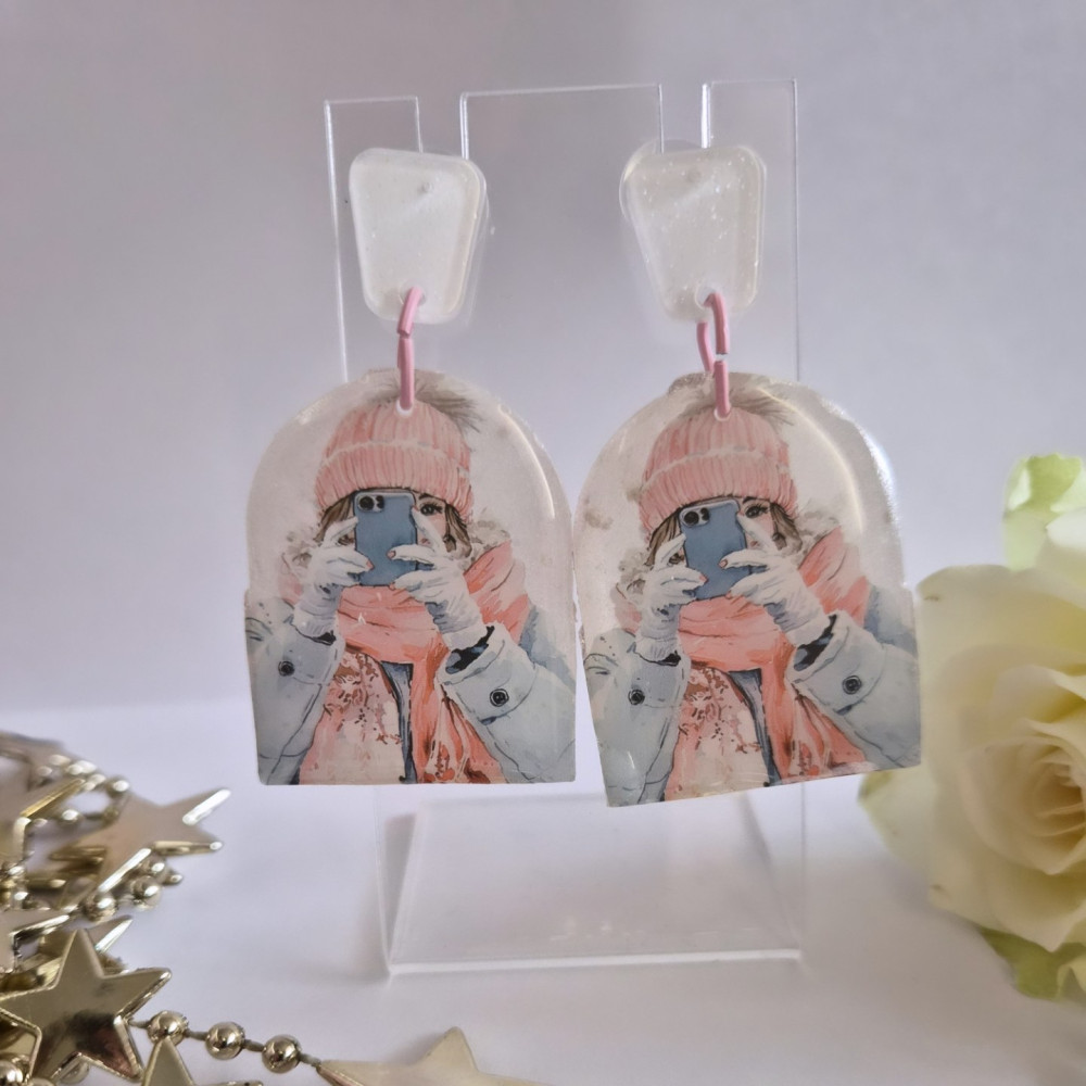 Добави артистичен и смел акцент към своя стил с тези ръчно изработени обеци от бижутерска смола, съчетаващи креативност и изисканост.